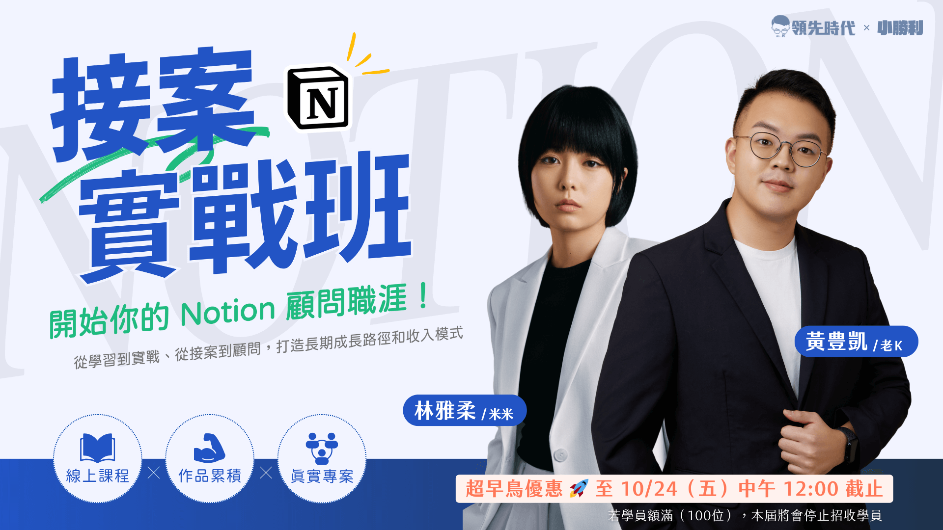 小勝利 Small Wins 品牌創辦人,Notion 官方推薦模板創作者。我的旅程始於英語模板製作,目前正緩慢把我的模板中文化中。 國外的 Notion 資源很豐富,我希望搭起這個資訊的橋樑,讓更多人認識 Notion 的方便之處,一起在工作上升級!